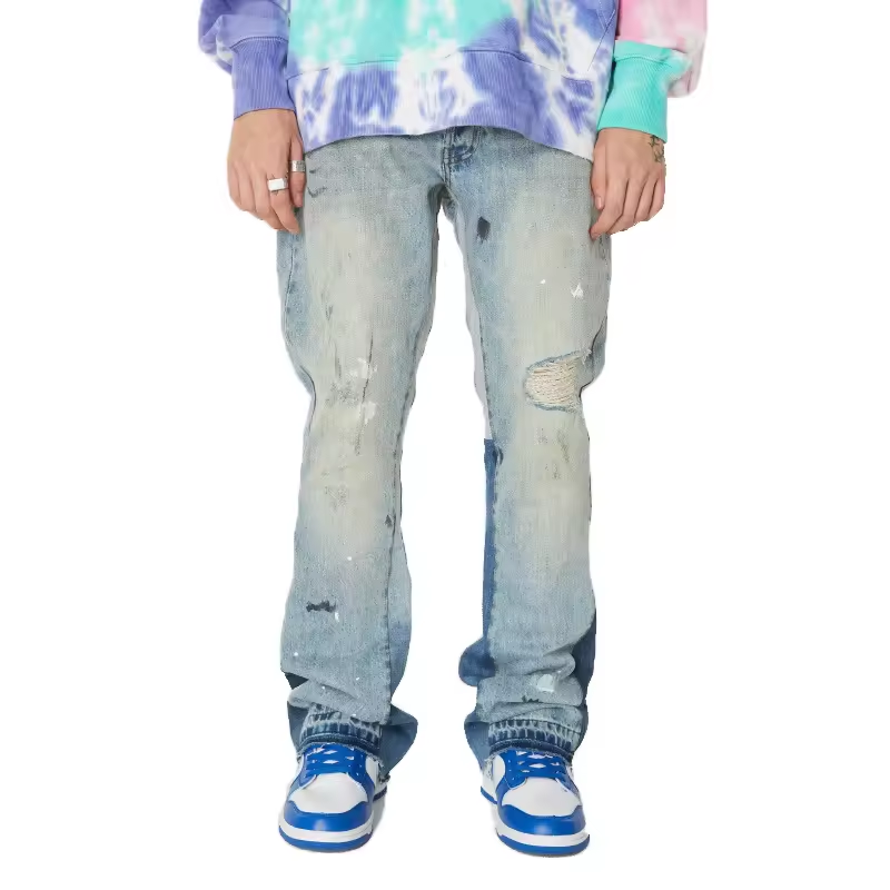 Experience the ultimate in style and quality with our USA Aymir Custom Jeans. Designed with a laser cut, ripped finish and stylish blue denim, these men's pants are perfect for streetwear fashion. Elevate your wardrobe with our high-quality and designer custom jeans.